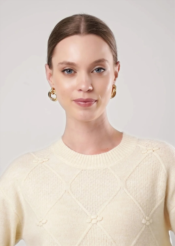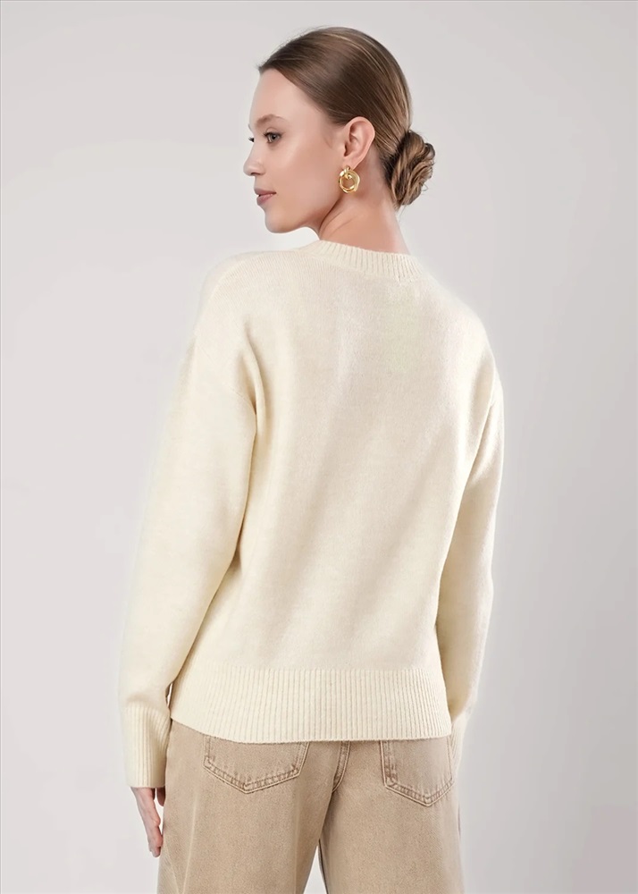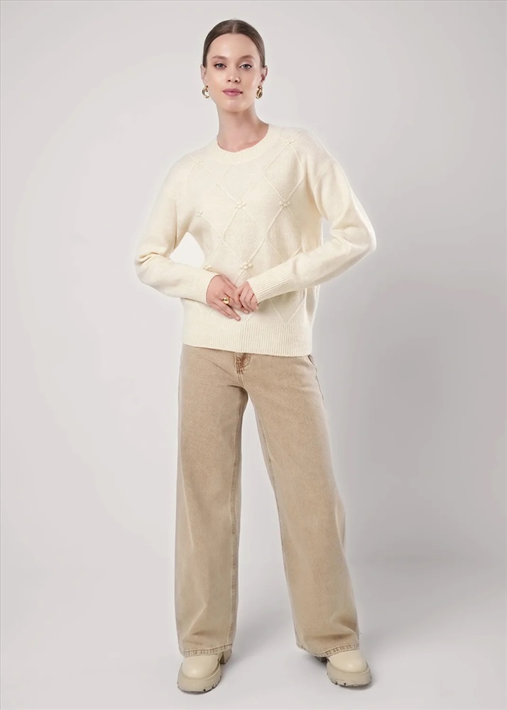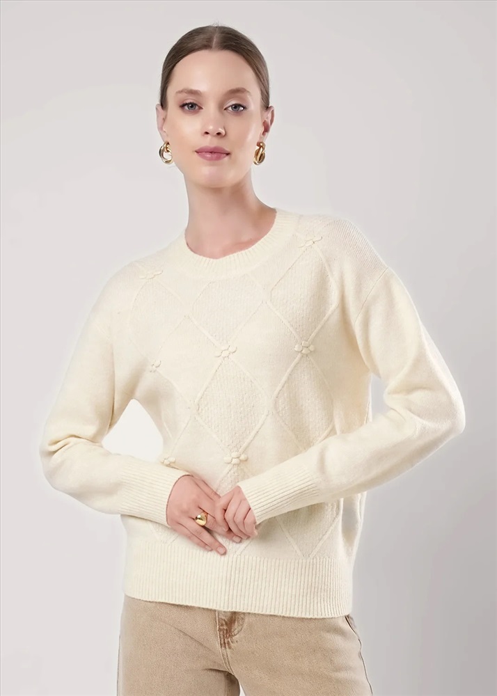 Производитель: CLEVER; Российский размер: 44; Обхват груди: 88; Обхват бедер: 94-96; Обхват под грудью (бюст): 75; Артикул поставщика: 154555/185апэ; Состав: 74% акрил, 22% полиэстер, 4% эластан; Сезон: Осень, Зима; Год: 2025; Страна: Россия; Рост: 170 Вязаный джемпер из акриловой пряжи, переплетения гладь. Втачной длинный рукав. По низу рукава и изделия манжеты. Округлая горловина с бейкой. По переду косы.