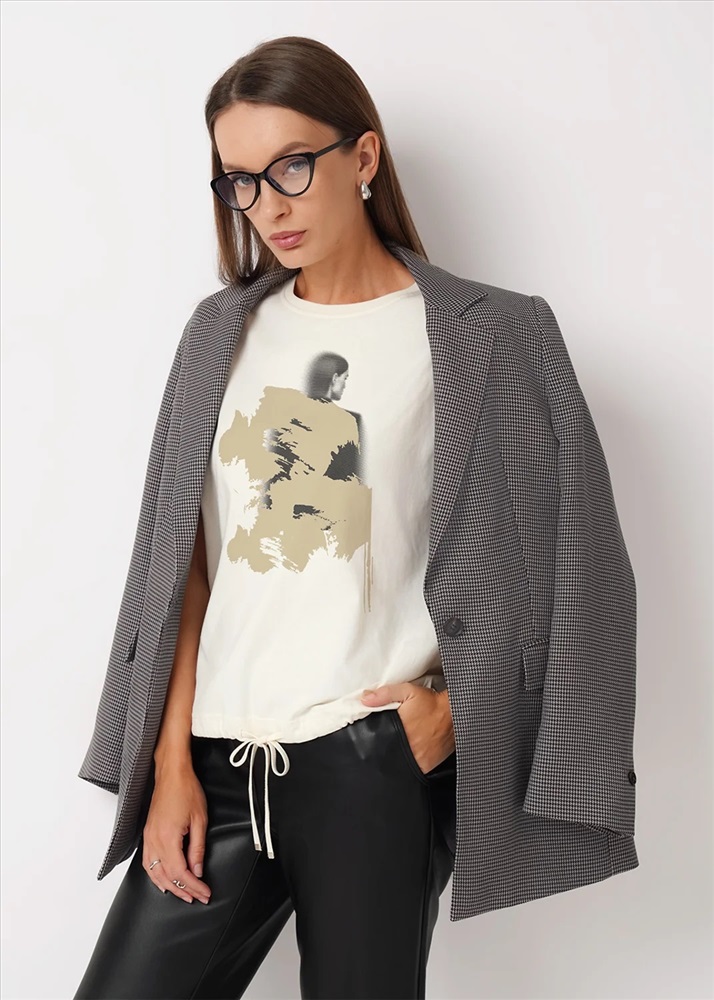 Производитель: CLEVER; Российский размер: 46; Обхват груди: 92; Обхват бедер: 98-100; Обхват под грудью (бюст): 80; Артикул поставщика: 267075кк_п; Состав: 100% Хлопок; Сезон: Весна, Лето; Год: 2026; Страна: Россия; Рост: 170 Джемпер из хлопкового трикотажного полотна. Округлая горловина с обтачкой из рибаны, короткий втачной рукав. По низу кулиса. По переду принт фольга.