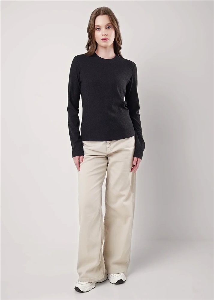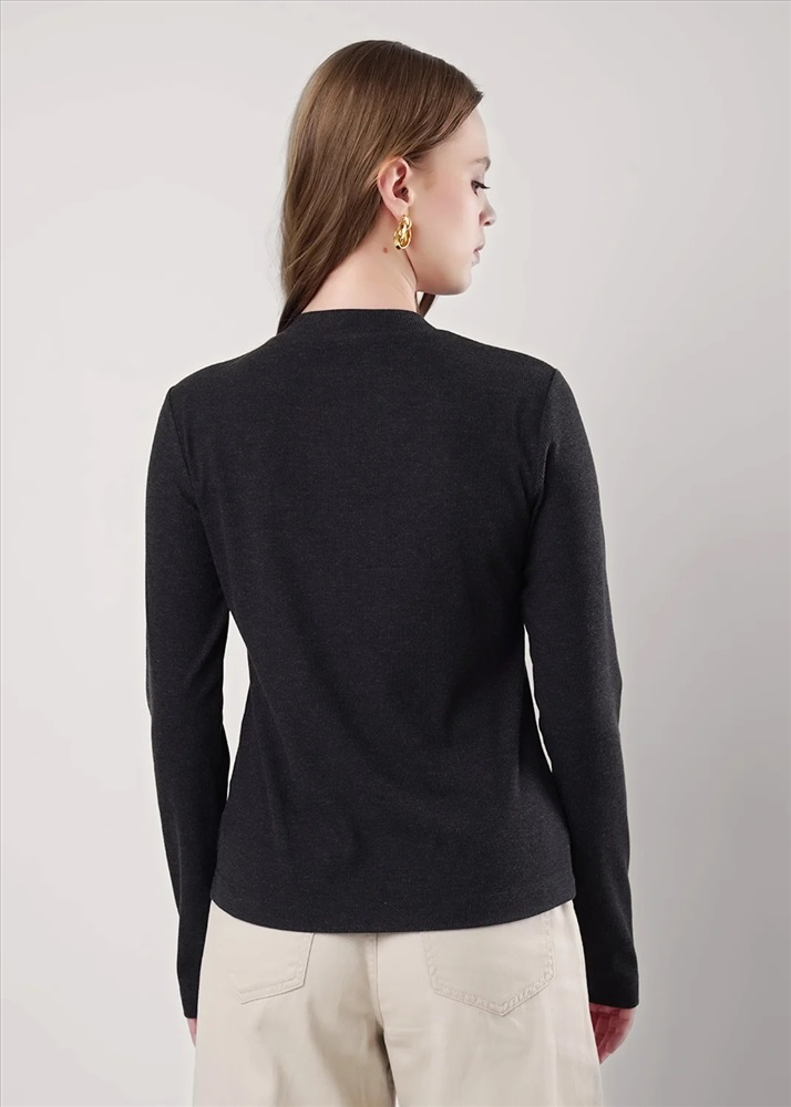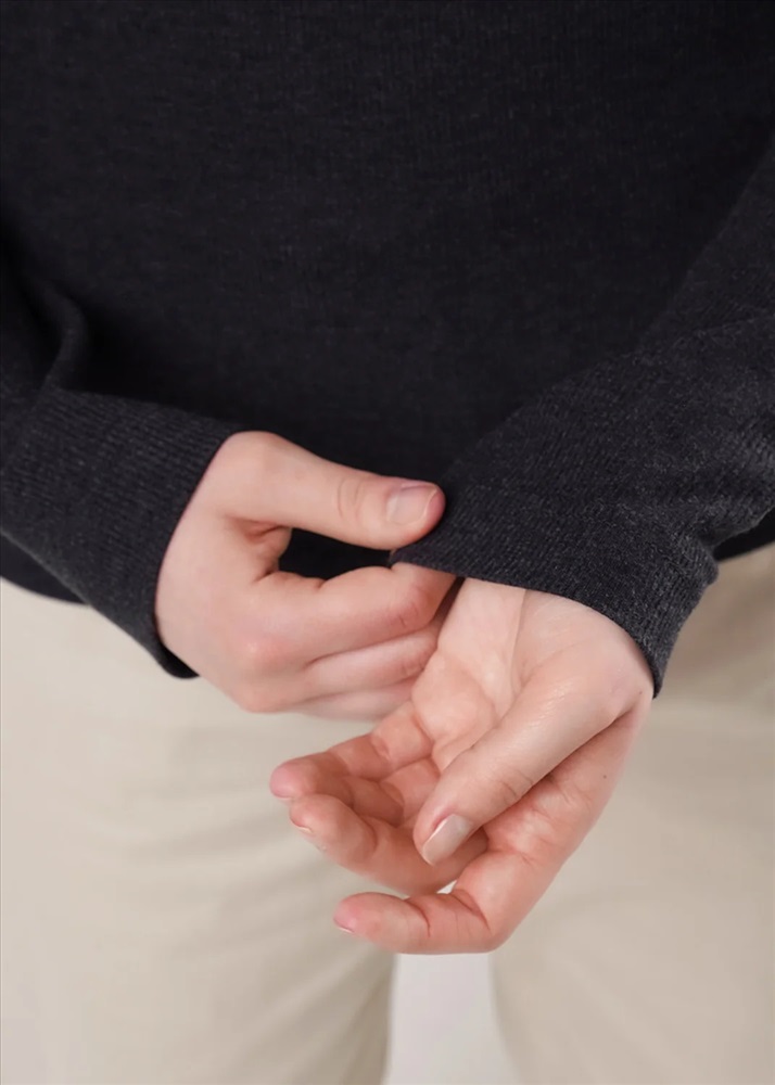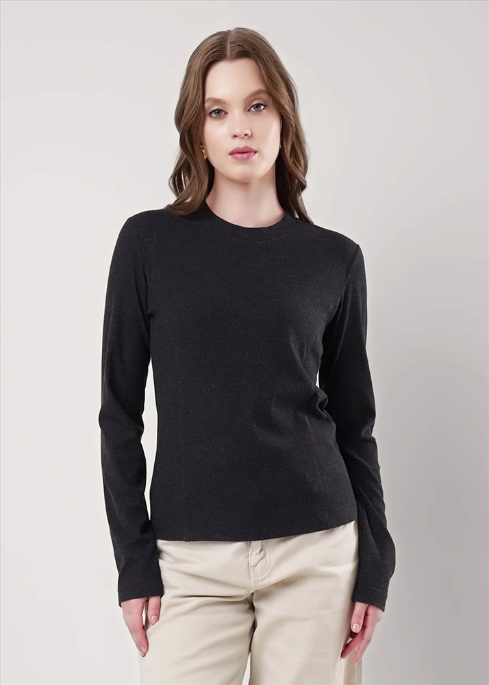 Джемпер из поливискозного трикотажного полотна кашкорсе с эластаном. Округлая горловина с обтачкой. По переду отстроченные резы. Длинный втачной рукав.