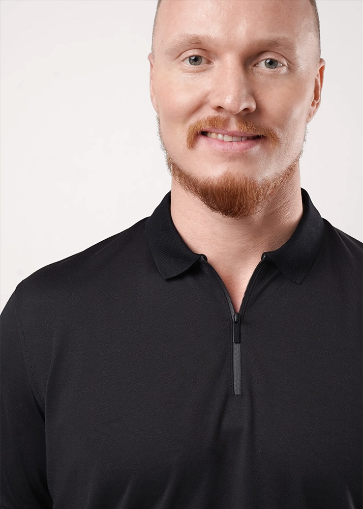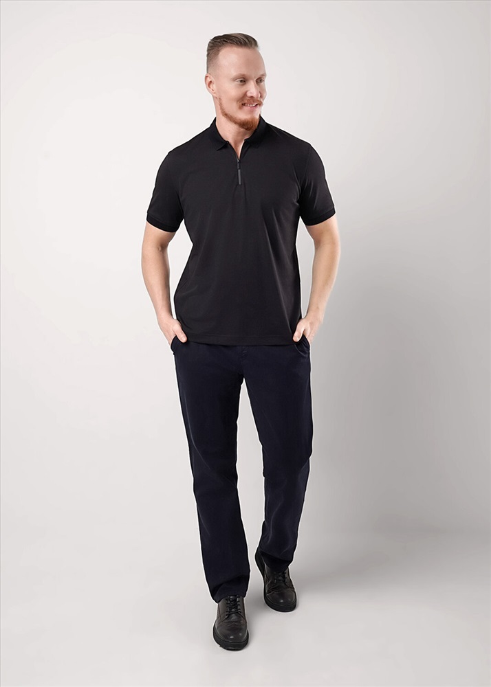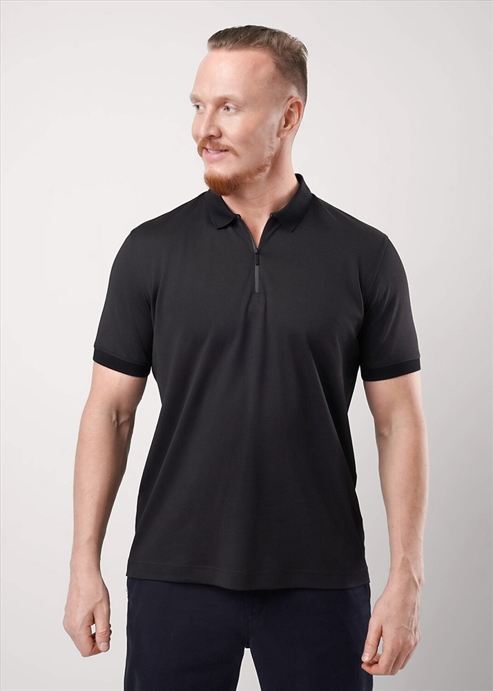 Футболка-поло с вязаными отделками. Модель с коротким рукавом на манжете и функциональной планкой на молнию. Модель можно дополнить брюками или джинсами. Отличный вариант для встреч с друзьями.