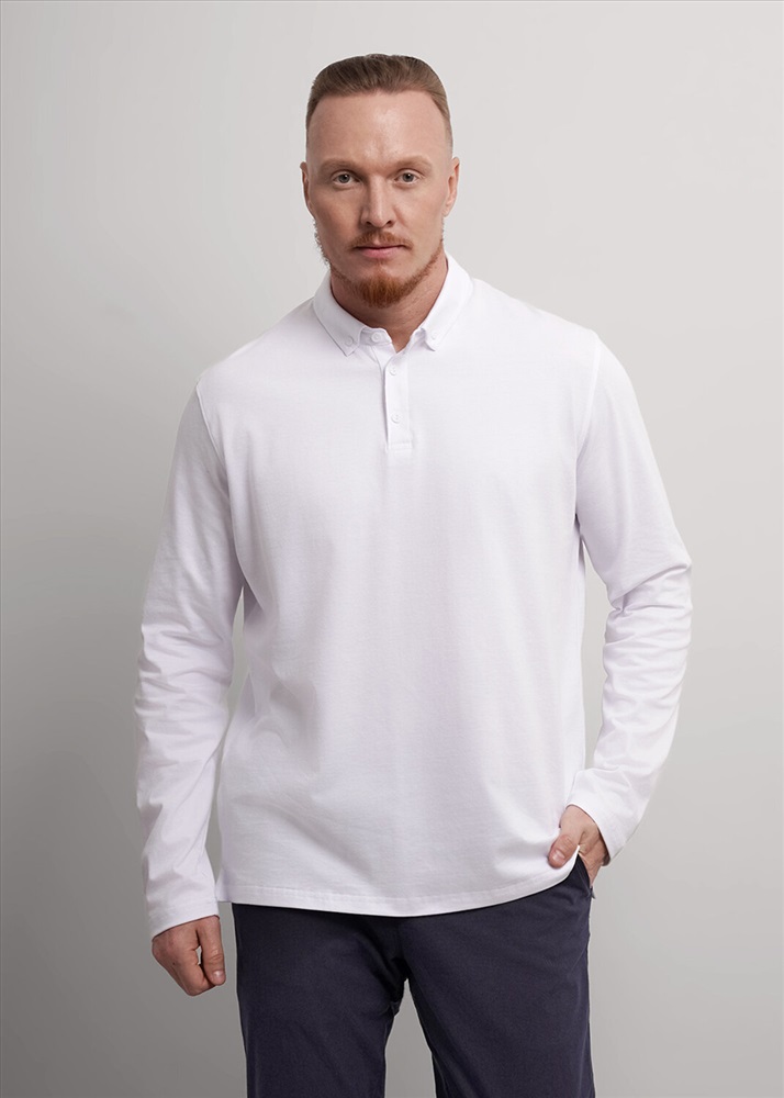 Производитель: CLEVER; Российский размер: 48; Рост: 176; Обхват груди: 96; Обхват талии: 84-86; Обхват шеи: 40; Артикул поставщика: 452591/03зл; Состав: 95% хлопок, 5% эластан; Сезон: Осень, Зима; Год: 2025; Страна: Россия Рубашка-поло с длинным рукавом. Изделие выполнено из трикотажного полотна с кроеным отложным воротником. Модель дополнена фурнитурой. Такая рубашка-поло отлично сочетается с брюками или джинсами и подходит для учебы.