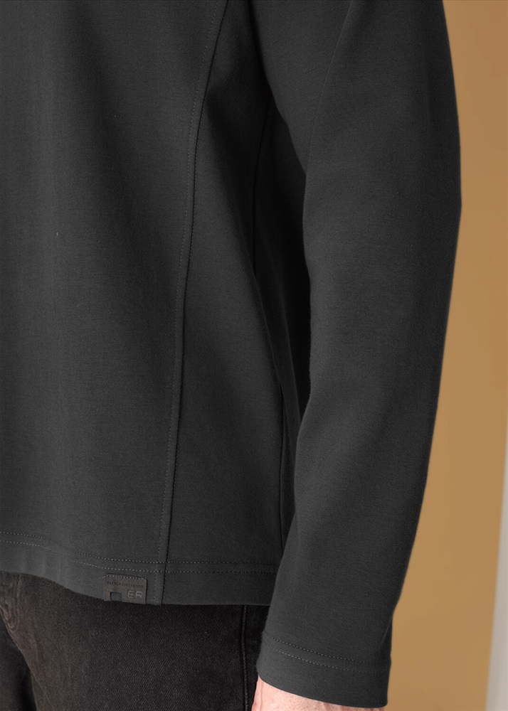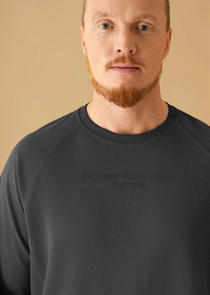 Стильный мужской лонгслив из трикотажного полотна. Изделие с круглым вырезом горловины и длинным рукавом "реглан", в качестве отделки имиджевый принт и фурнитура. Отличный вариант на каждый день.
