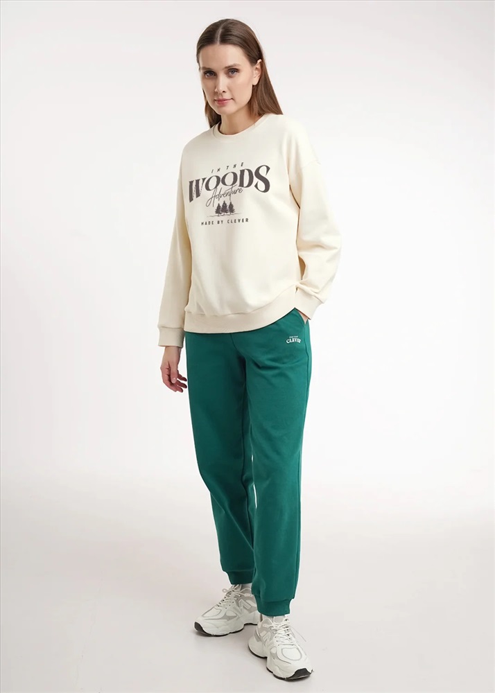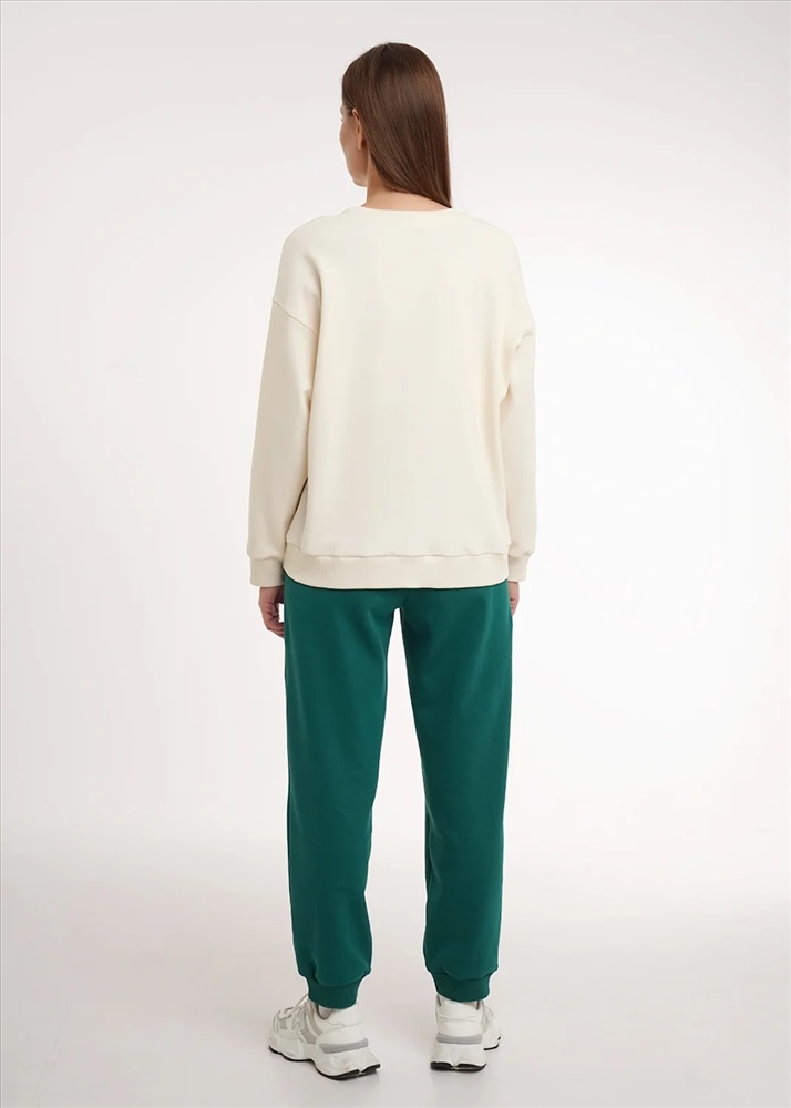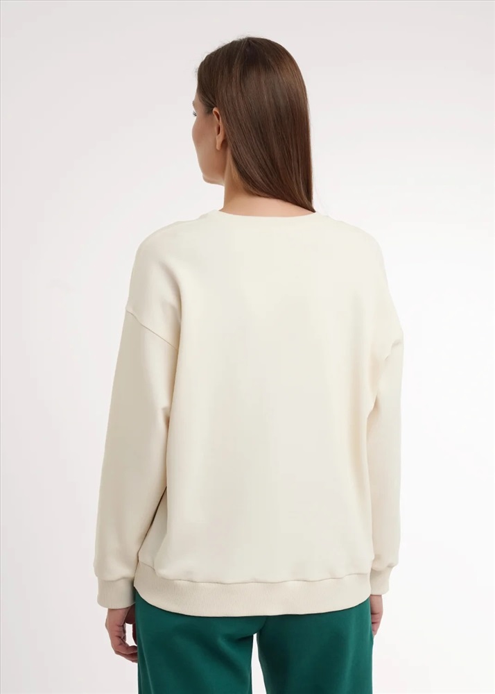 Джемпер из трикотажного полотна дабл фейс свободного силуэта. Длинный рукав со спущенной линией плеча. Округлая горловина с обтачкой из кашкорсе. По низу рукава и изделия манжет из кашкорсе. Спереди принт.