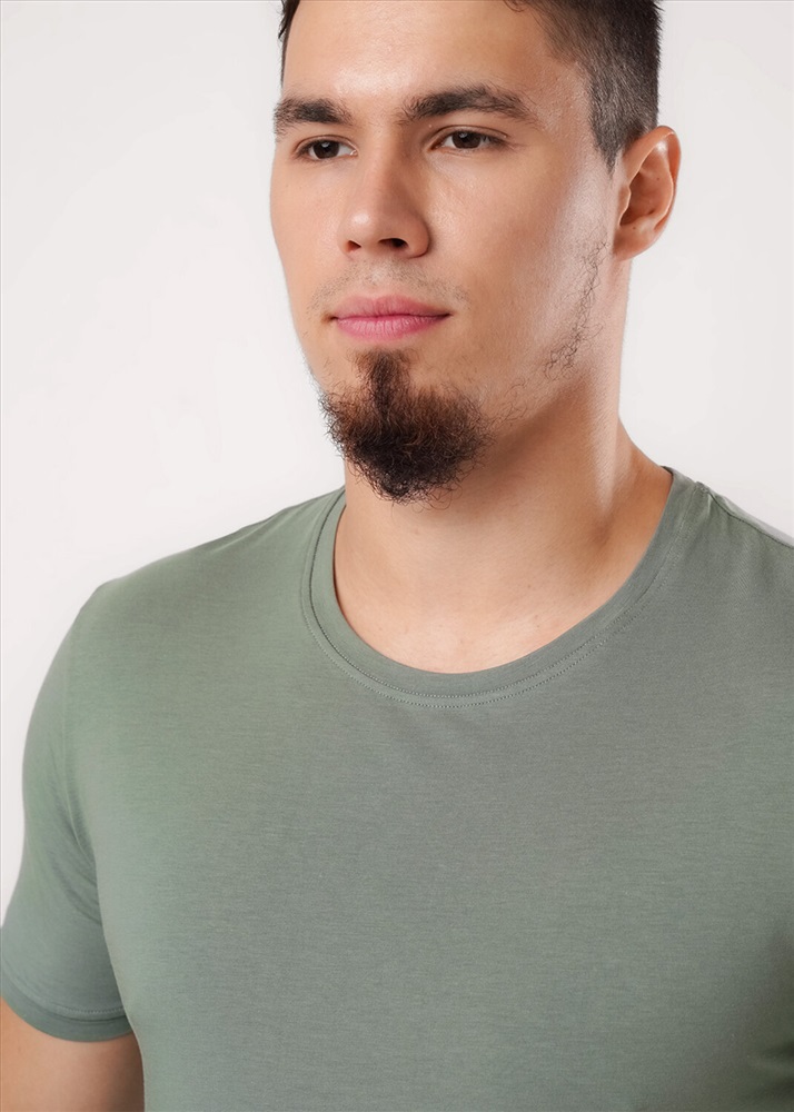 Стильная мужская футболка из модала с коротким рукавом и имиджевой нашивкой.