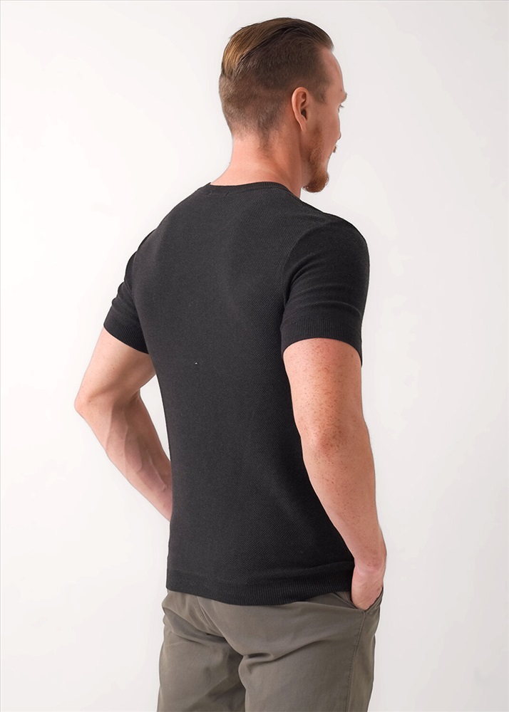 Вязаная футболка с коротким рукавом, выполненная из смесовой пряжи, обладает фактурным переплетением, которое придает ей стильный и современный вид. Эта модель прекрасно сочетается с джинсами, брюками позволяя создавать разнообразные образы.
