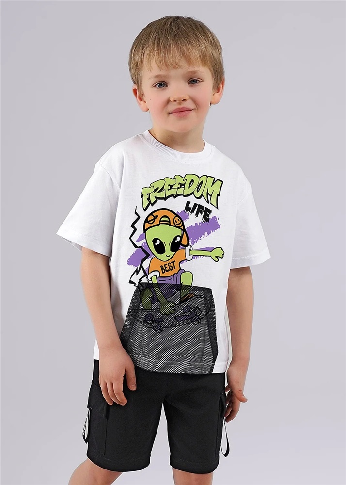 Производитель: CLEVER; Российский размер: 110, 116; Рост: 110-116; Возраст: 5-6; Обхват груди: 60; Обхват талии: 51; Артикул поставщика: 846649/79кд_п; Состав: 100% хлопок; Сезон: Весна, Лето; Год: 2024; Страна: Россия Белая футболка из 100% хлопка с крупным принтом выразит твою индивидуальность! Оригинальная деталь - карман кенгуру из сетки. Умеренный объем, прямой силуэт, эластичная горловина из кашкорсе. Дополни модель шортами и крутой летний аутфит готов!