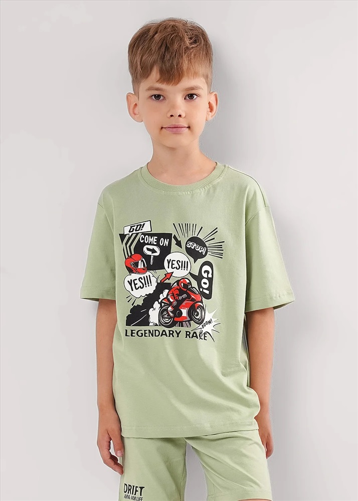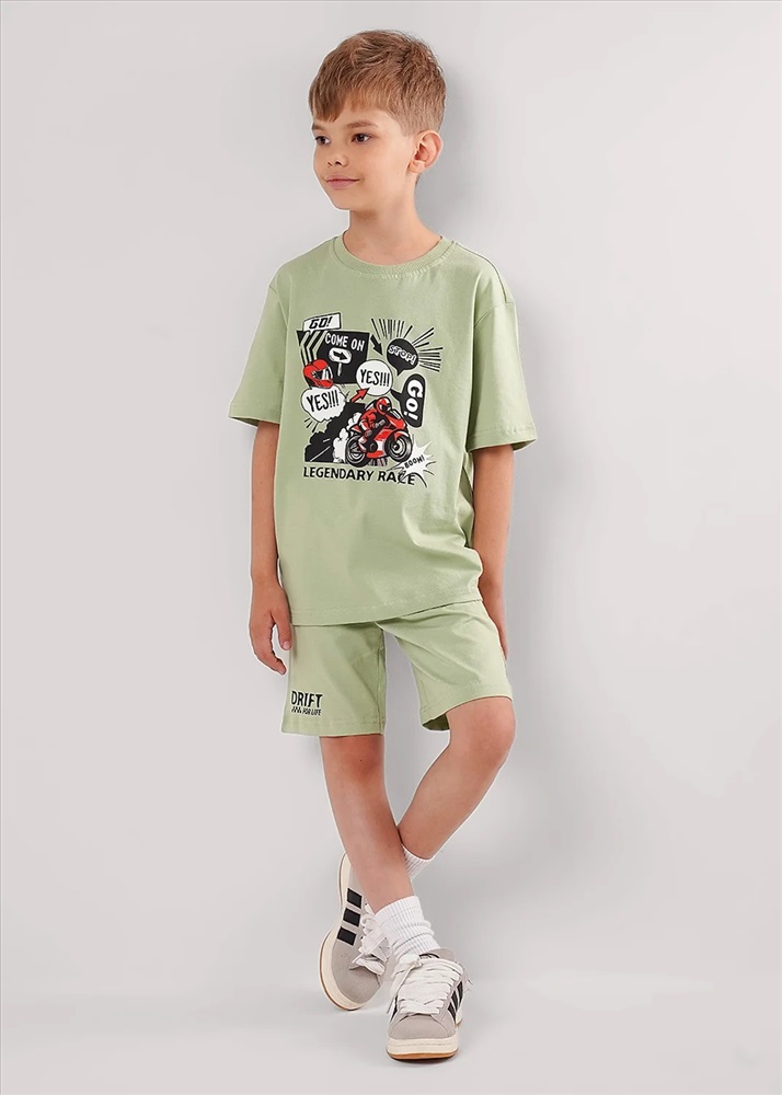 Комплект из футбоки и шорт для мальчика. Футболка из 100% хлопка, украшена крутым принтом!Стильные базовые шорты из натурального трикотажного полотна отлично подойдут для занятий спортом и повседневной носки.