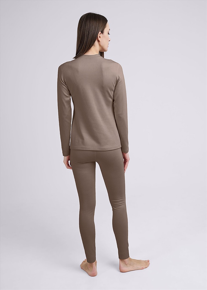 Комплект из трикотажного ажурного полотна. Изделие плотно прилегает к телу, не сковывает движений и подчеркивает силуэт. По низу джемпера нашивка с силиконовой печатью. Леггинсы без боковых швов и цельнокроеным поясом с эластичной резинкой внутри.