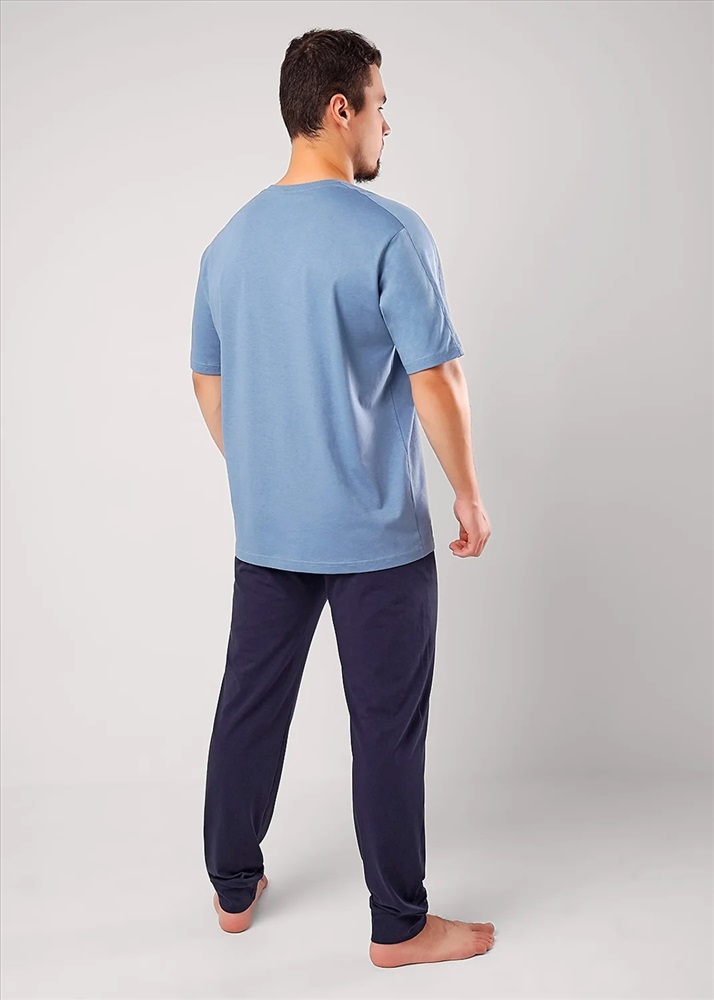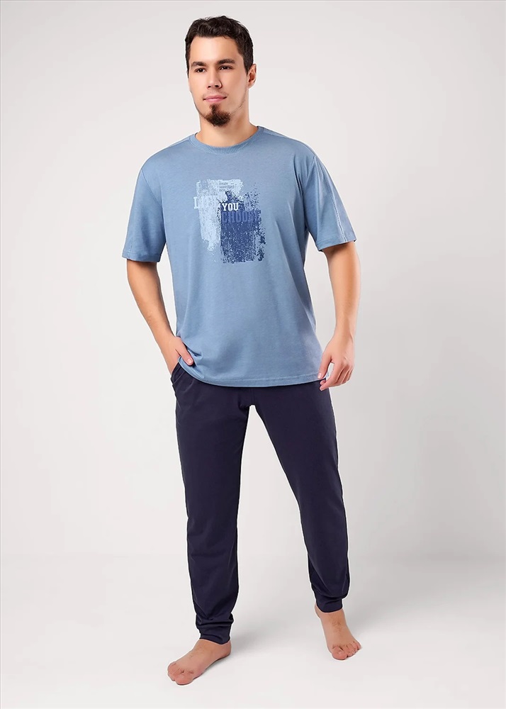 Набор состоящий из футболки и брюк. Футболка из хлопковой кулирной глади с декоративными резами с коротким рукавом и принтом. Брюки из плотной хлопковой кулирной глади с добавлением эластана на широком поясе с резинкой и шнуром, по бокам карманы.