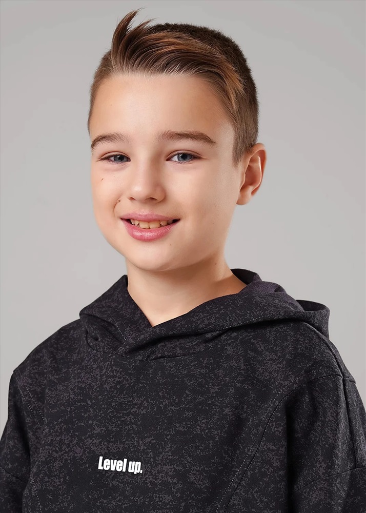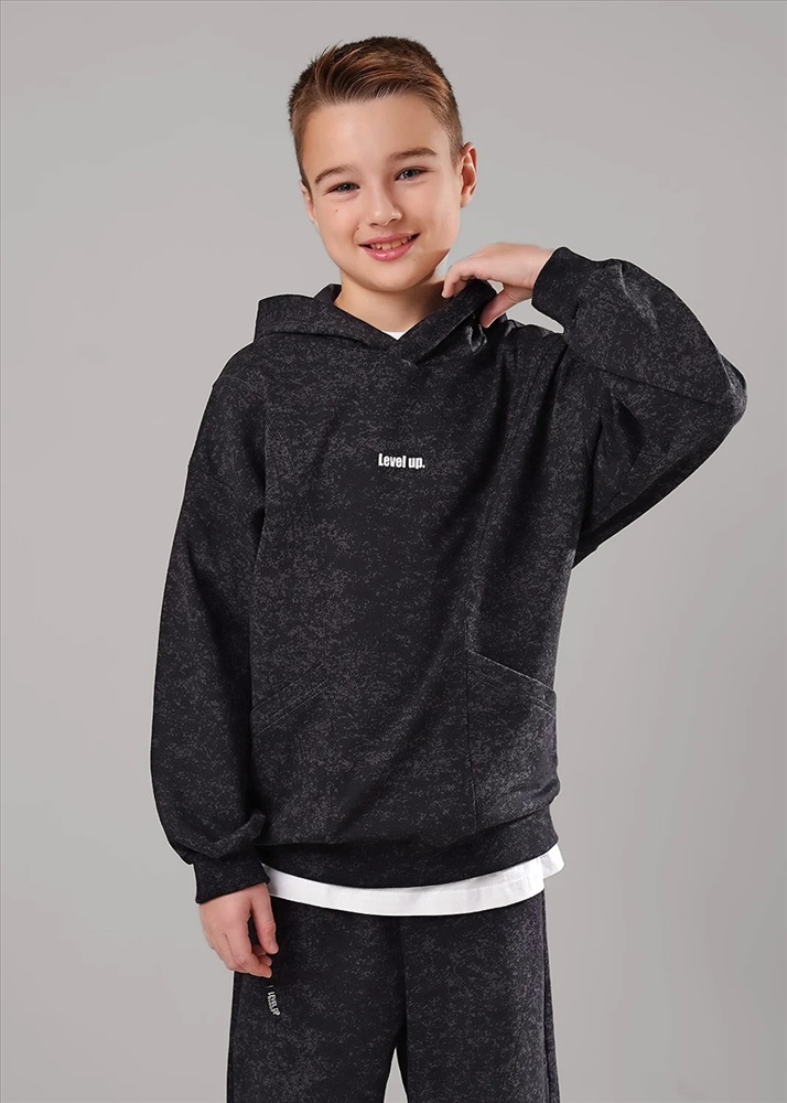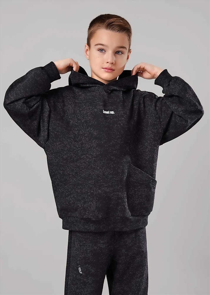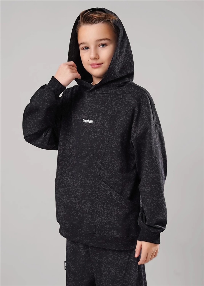 Худи для стильного свободолюбивого подростка. Модель с фигурными резами спереди и сзади дополнена трендовым принтом. Комфортная оверсайз посадка, капюшон, удобные карманы, манжеты и пояс из кашкорсе- все что нужно для активной жизни подростка!