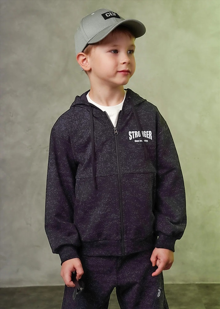 Стильная толстовка из варёного футера для мальчика. Комфортная посадка оверсайз, капюшон, застежка на молнии, удобные карманы, эластичные манжеты и пояс - всё, что нужно для активной жизни ребёнка! Сочетай толстовку с брюками из новой коллекции.