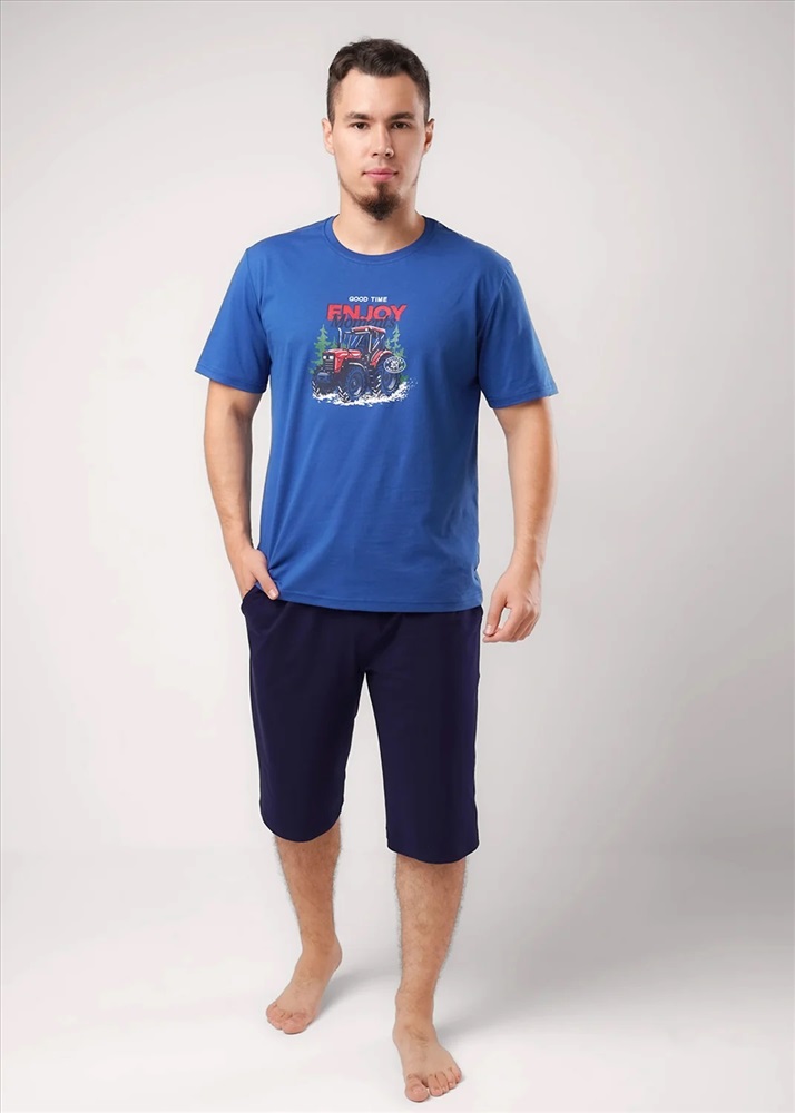 Набор, состоящий из футболки и шорт. Футболка из хлопковой кулирной глади с округлой горловиной, коротким рукавом и дизайнерским принтом. Шорты из плотной кулирной глади с эластаном на эластичном поясе с функциональными карманами и шнуром.