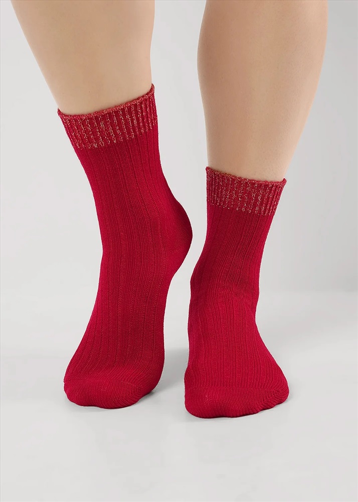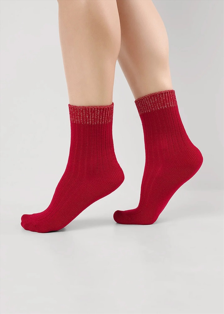 женские теплые носки в рубчик, резинка украшена люрексом