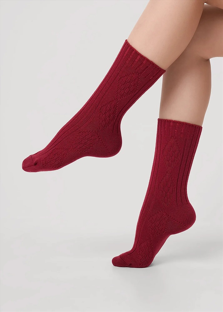Производитель: CLEVER; Российский размер: 23; Длина стопы: 22-24; Артикул поставщика: Д684Ш; Состав: 80% хлопок, 15% полиамид, 5% эластан; Год: 2025; Страна: Россия объемные женские удлиненные носки с геометрическим рисунком