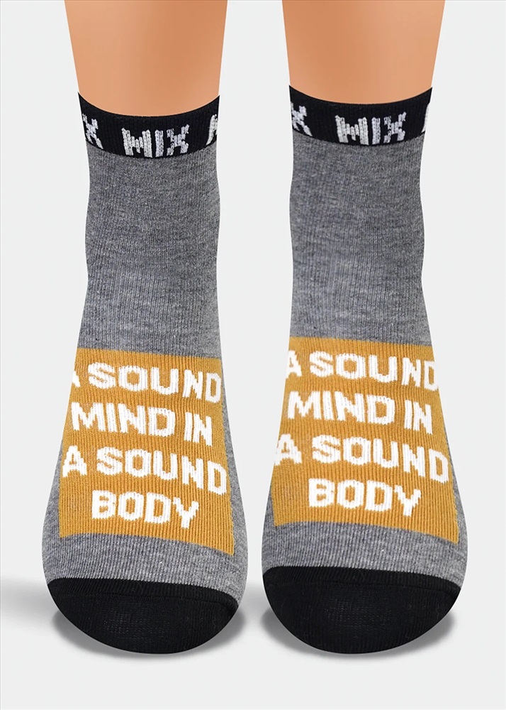 стильные носки для мальчика из мулинированной пряжи с надписью " в здоровом теле, здоровый дух"