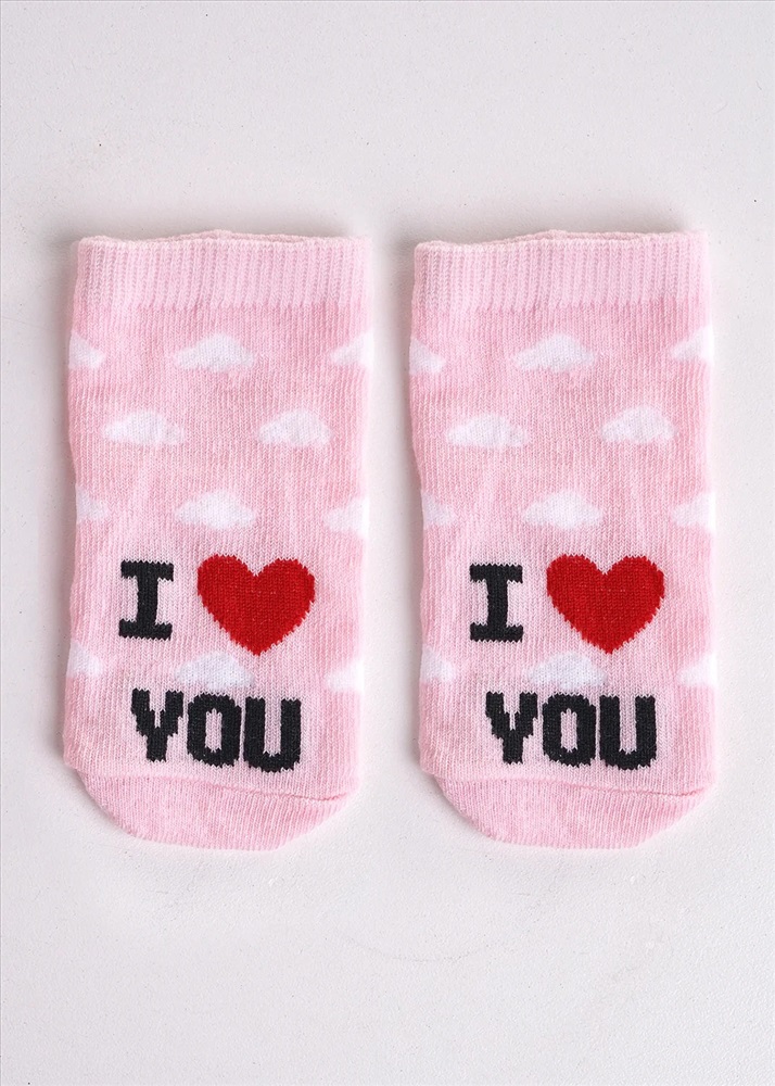 Детские носки для ясельной возрастной группы, розового цвета, с изображением надписи "I LOVE YOU" . Выполнены из мягкого трикотажа, что не вызывает дискомфорта при носке, отлично сидят на ножке. После стирки не дают усадку. Размер 7-8