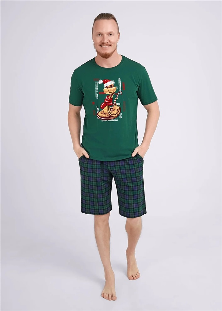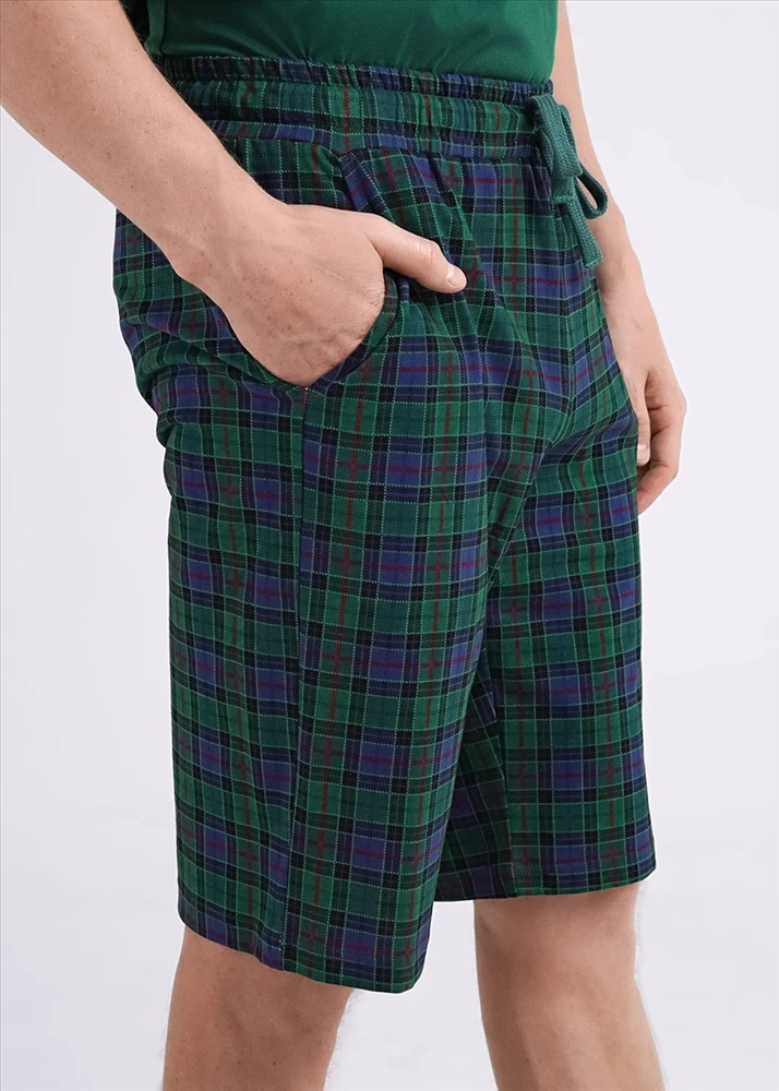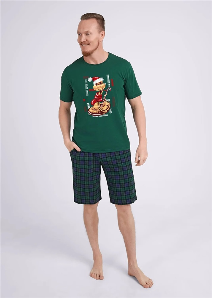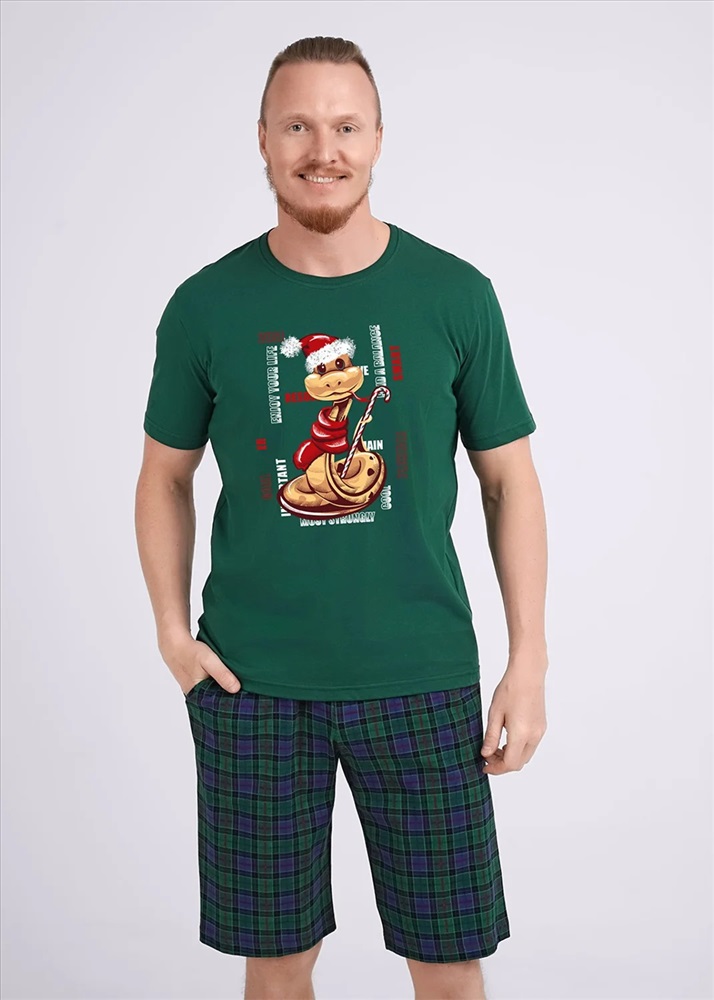 Комплект мужской состоящий из футболки и шорт. Футболка из трикотажного полотна с коротким рукавом, спереди авторский принт. Шорты из клетчатого трикотажа с карбоном на широком поясе с резинкой и регулируемым шнуром, по бокам удобные карманы.