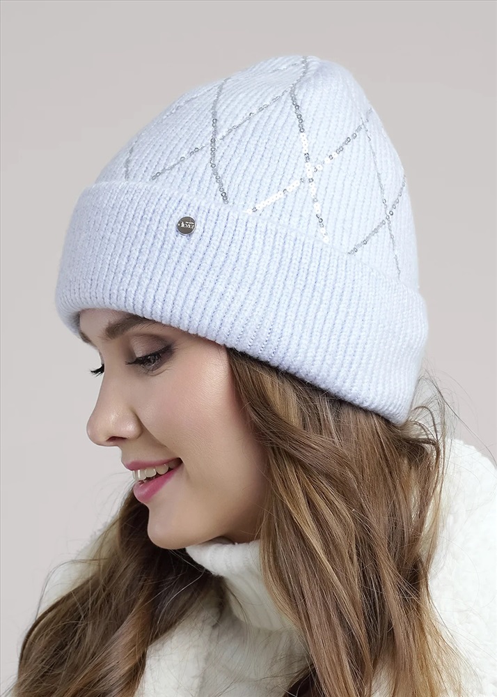 Шапка женская с отворотом, с флисовой подкладкой, декорирована вышивкой из пайеток. Отличный выбор для холодной зимы.