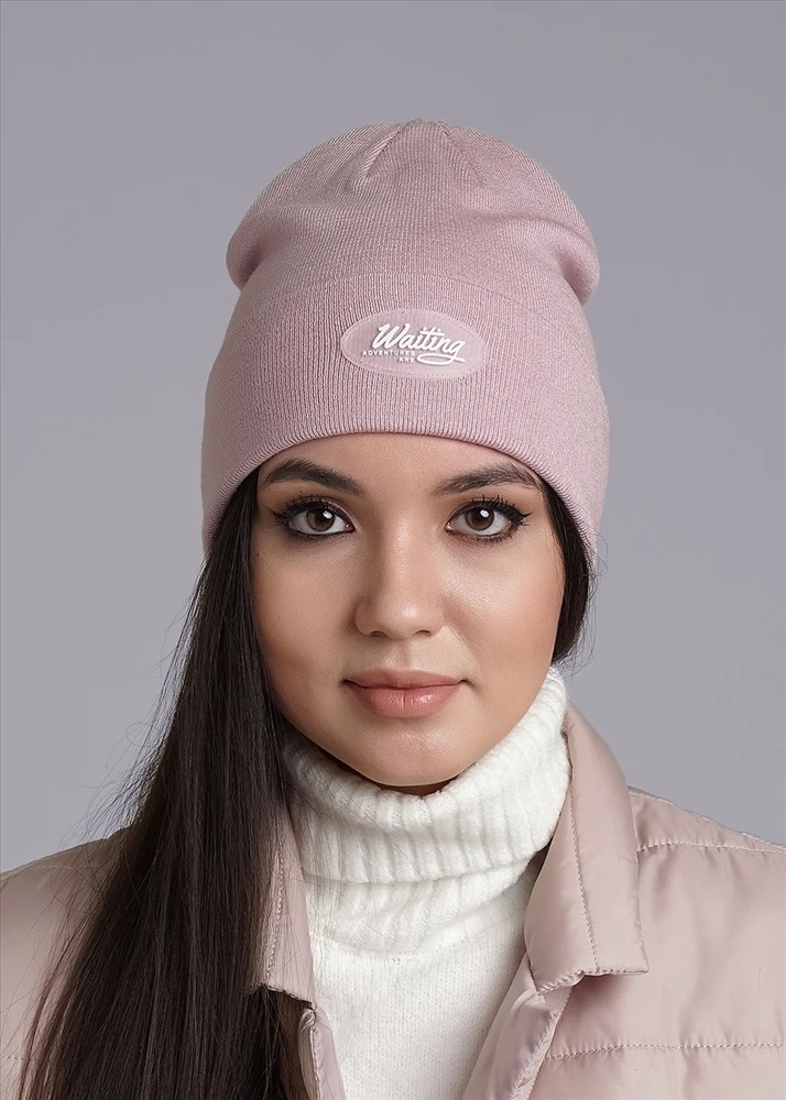 Женская двойная шапка с отворотом, декорирована нашивкой логотип в центральной части. Идеально подойдёт для весенне- осеннего сезона.