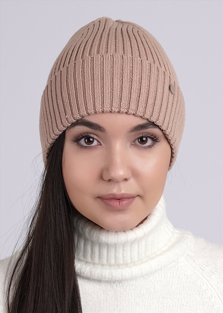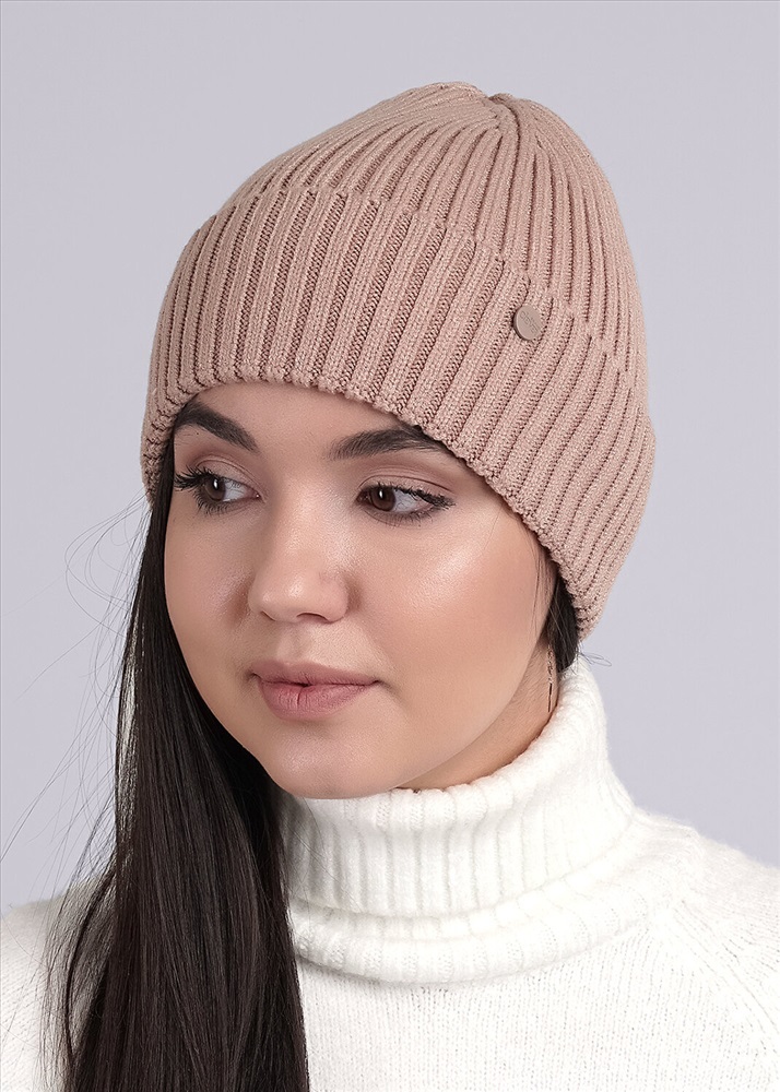 Шапка женская с отворотом, выполнена ластичным переплетением. Декорирована нашивкой логотип. Отдично подойдёт для осенне- весеннего периода.
