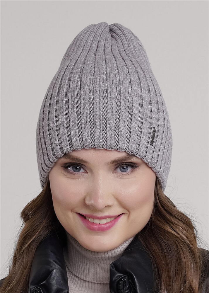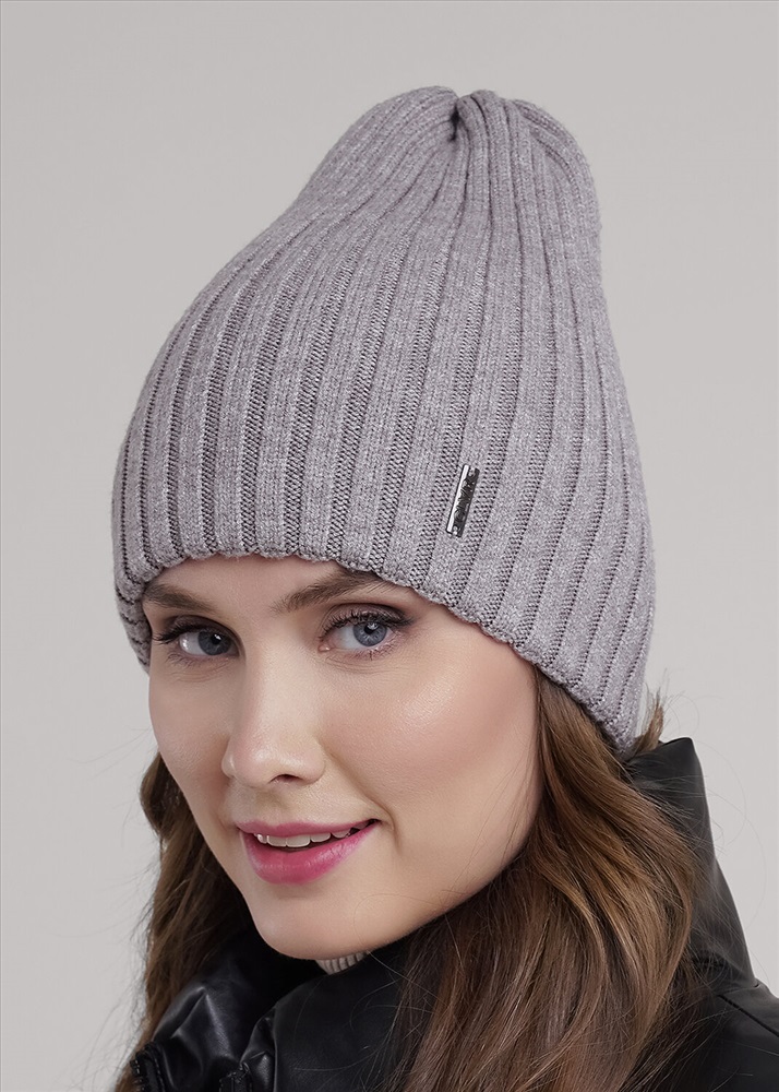 Женская двойная шапка без отворота, без подклада, декорирована нашивкой логотип. Подойдёт для холодной осени - тёплой зимы.