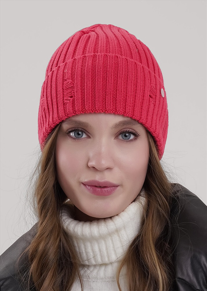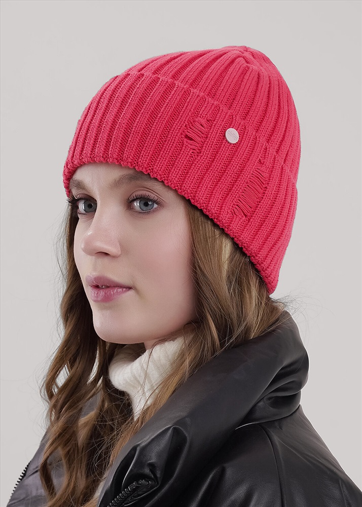 Хит сезона - "рваная" шапка в стиле кежуал. Шапка женская с отворотом, декорирована стильной нашивкой в височной зоне. Отлично подойдет для холодной осени- тёплой зимы.