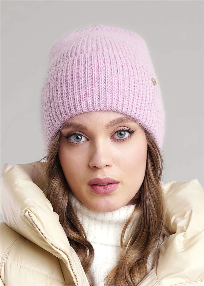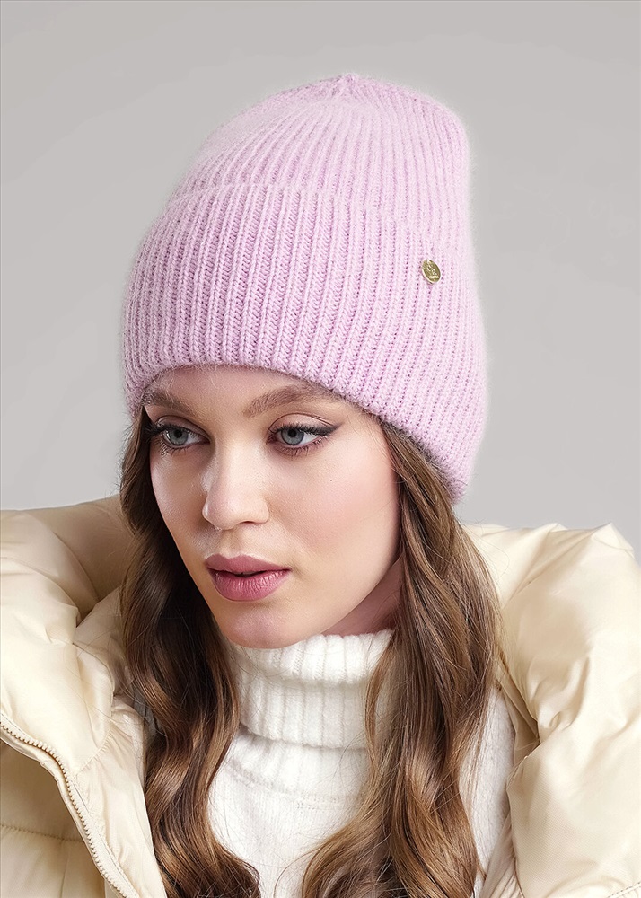 Шапка женская с отворотом, с флисовой подкладкой, декорирована стильным украшением. Выполнена из мягкой пряжи с добавлением ангоры, благодаря чему хорошо сохраняет тепло. Отличный выбор для холодной зимы.