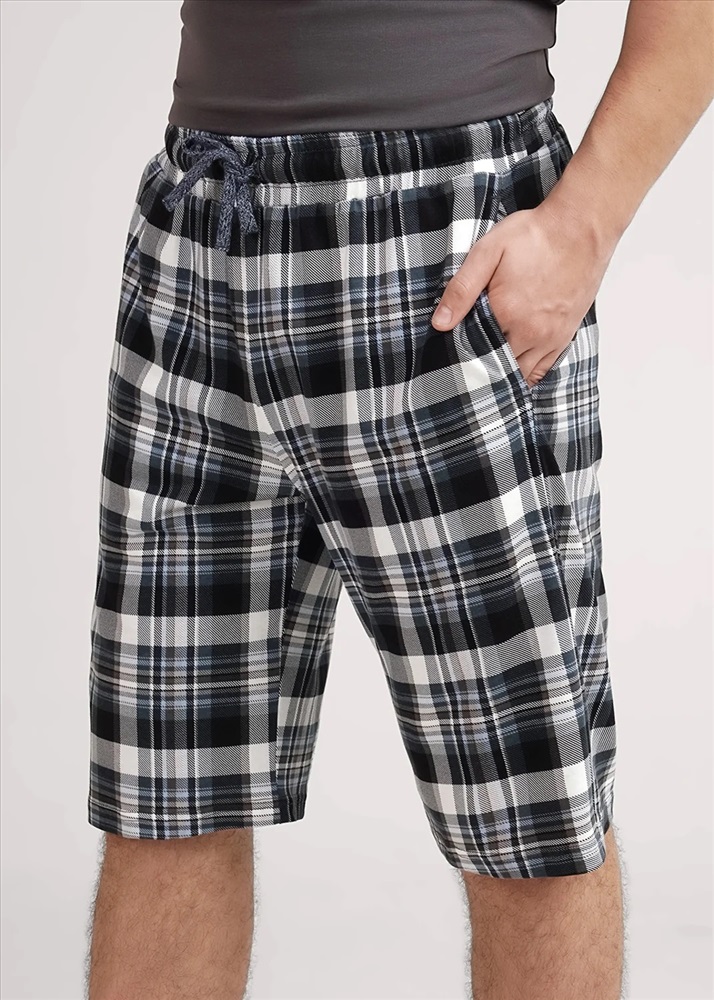 Мужские шорты из клетчатого трикотажа на широком поясе с резинкой, регулируемым шнуром и боковыми карманами. Создай свой стильный образ вместе с домашними шортами clever .