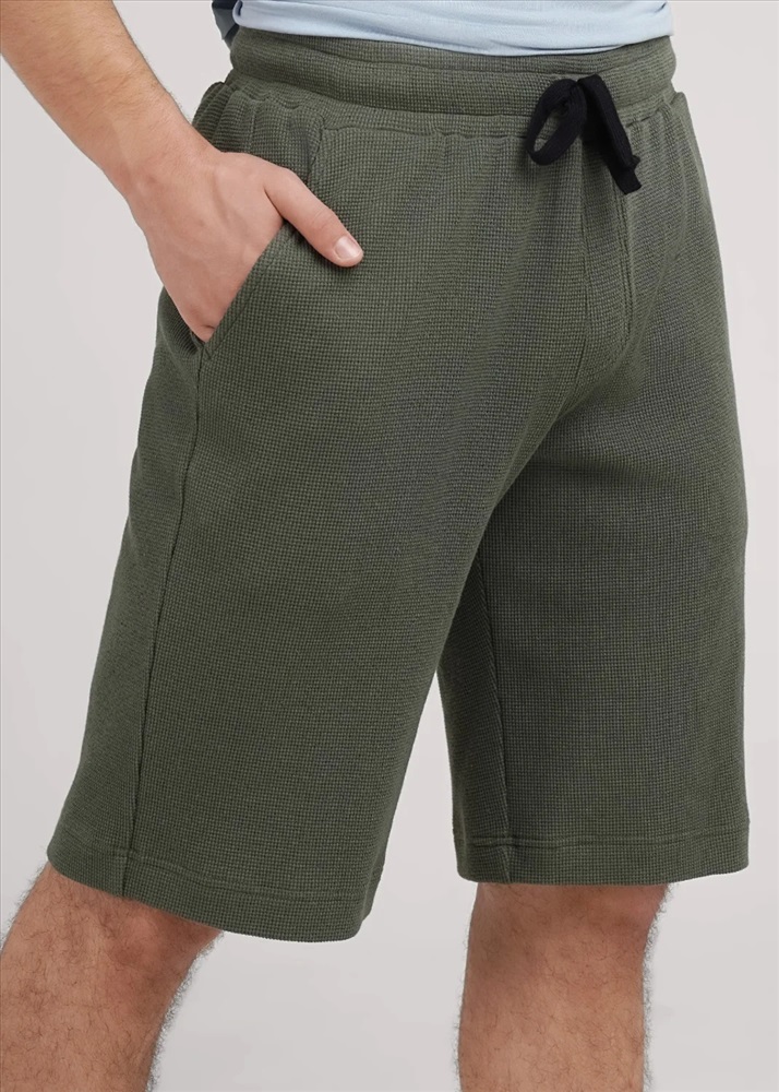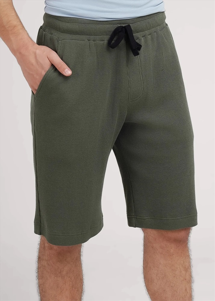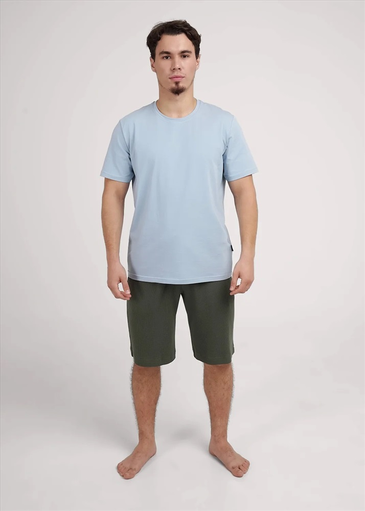 Шорты мужские из фактурного трикотажного полотна на широком поясе с резинкой и регулируемым шнуром, по бокам удобные карманы. Отлично решение для создания стильного образа.