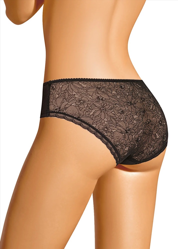 Трусы бикини женские из эластичного хлопкового полотна. Обработка краев - ажурная резинка с фестоном. По спинке ажурная сетка с узким кружевом по ноге. По переду атласный бант.