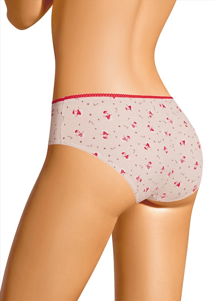 Трусы бикини женские из эластичного хлопкового полотна. Обработка краев по талии - ажурная резинка, по ноге - полуокантовка. По переду атласный бант.