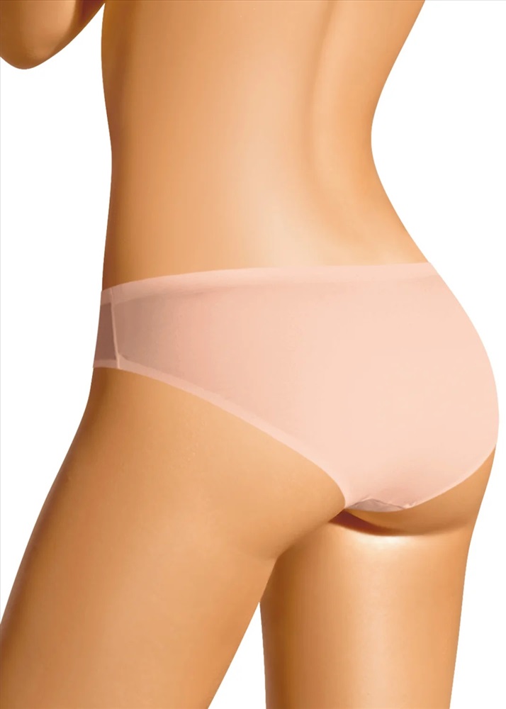Трусы бикини женские из полиамида с эластаном. По переду вставки из сетки. Обработка краев - подклееный край. Хлопковая ластовица.