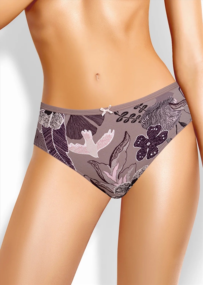 Трусы слипы женские из эластичного хлопкового полотна. Обработка краев по талии - окантовочная резинка, по ноге - полуокантовка. По переду атласный бант..