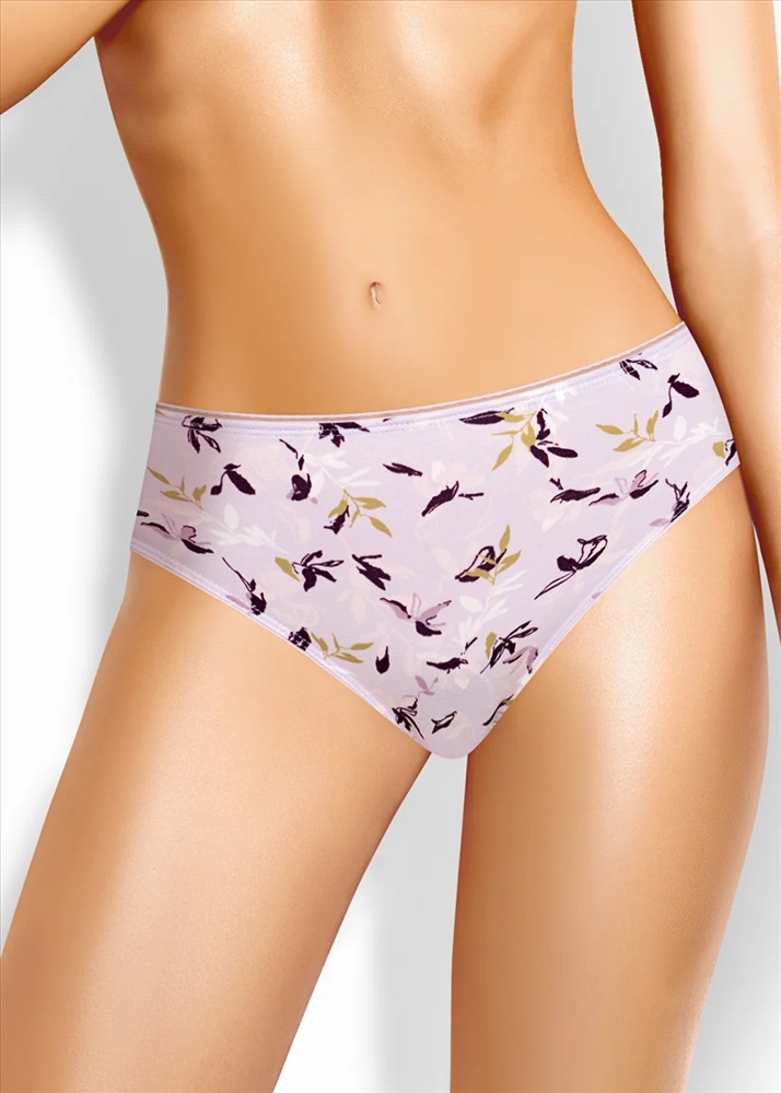 Трусы слипы женские из эластичного хлопкового полотна. Обработка краев по талии - ажурная резинка, по ноге - полуокантовка.