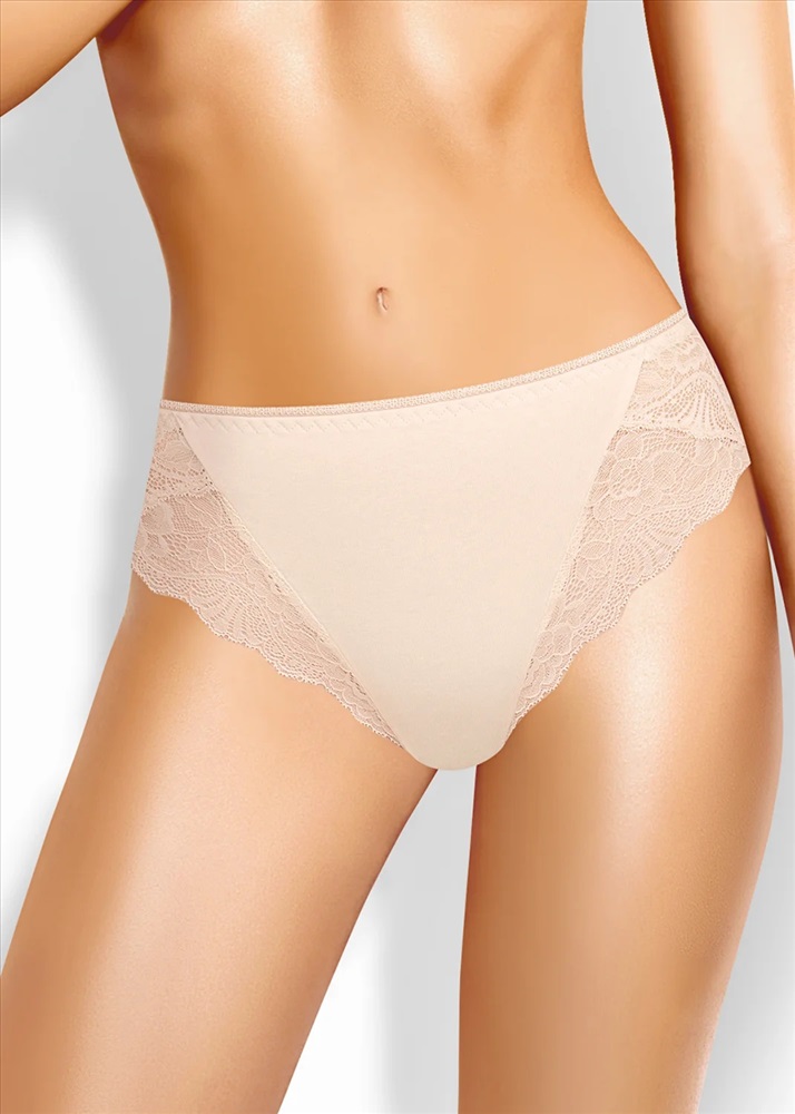 Трусы слипы женские из эластичного хлопкового полотна. По переду и спинке рез с кружевными вставками. Обработка краев по талии ажурная резинка (точечный зигзаг).