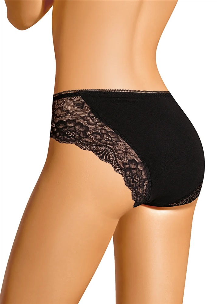 Трусы слипы женские из эластичного хлопкового полотна. По переду и спинке рез с кружевными вставками. Обработка краев по талии ажурная резинка (точечный зигзаг).