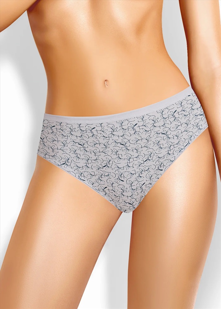 Трусы слипы женские из эластичного хлопкового полотна. Обработка краев по талии окантовочная резинка, по ноге - полуокантовка.