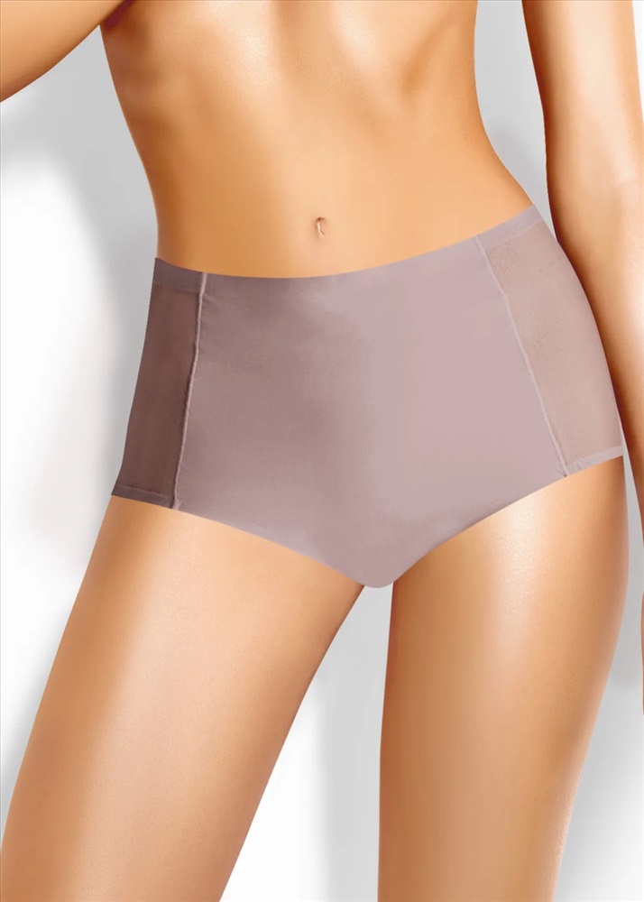 Трусы макси женские из полиамида с эластаном. По переду вставки из сетки. Обработка краев - подклееный край. Хлопковая ластовица.