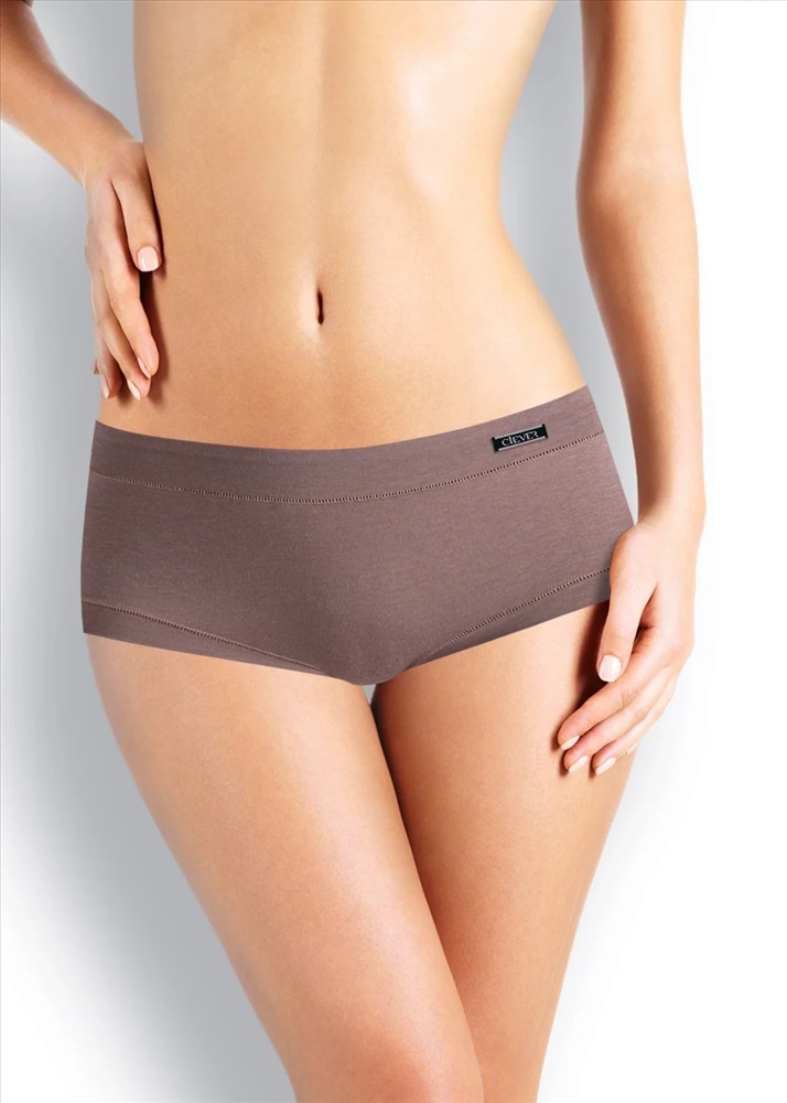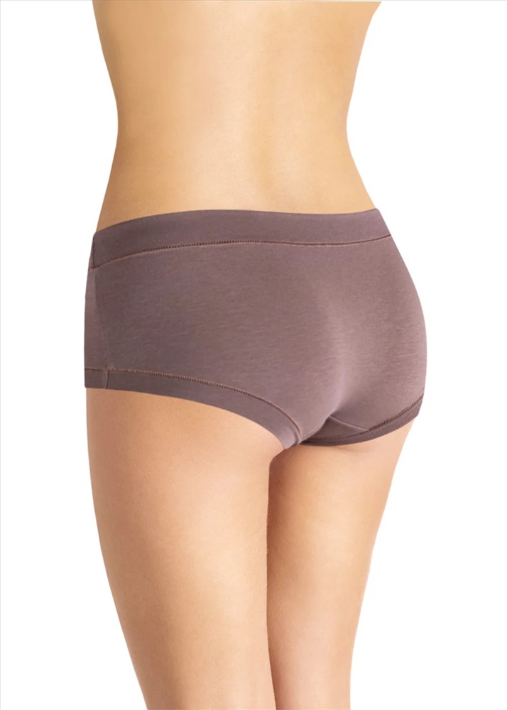 Трусы шорты-макси из эластичного полотна модал, по ножке и талии - притачная бейка из основного полотна. Пояс декорирован нашивкой с фирменным логотипом.