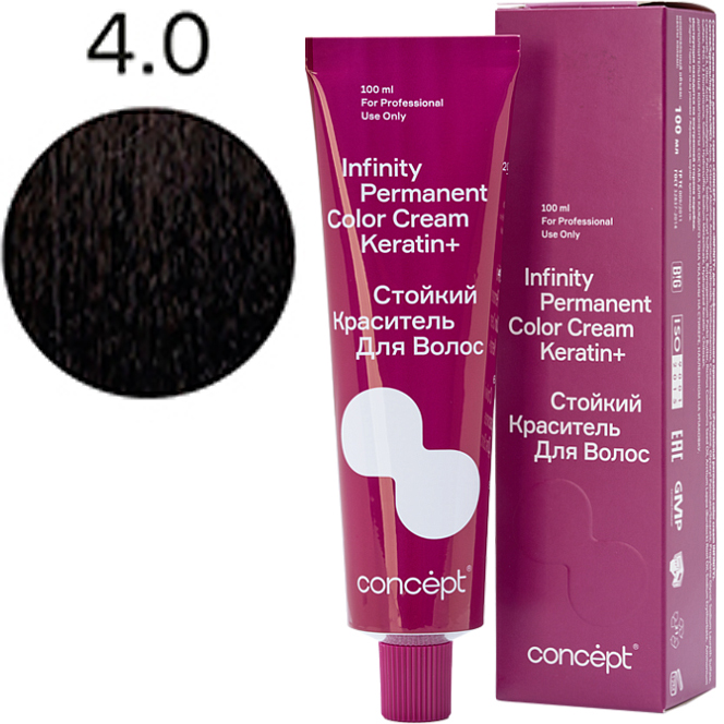Краситель Infinity Кератин+ — это синергия многогранности и стойкости цвета, бриллиантового блеска, восстановления структуры волос, полноценного и естественного покрытия седины.