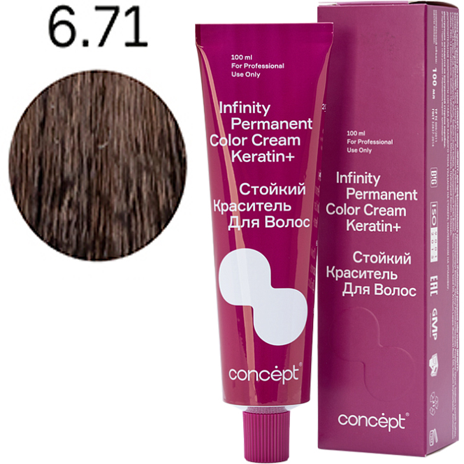 Краситель Infinity Кератин+ — это синергия многогранности и стойкости цвета, бриллиантового блеска, восстановления структуры волос, полноценного и естественного покрытия седины.