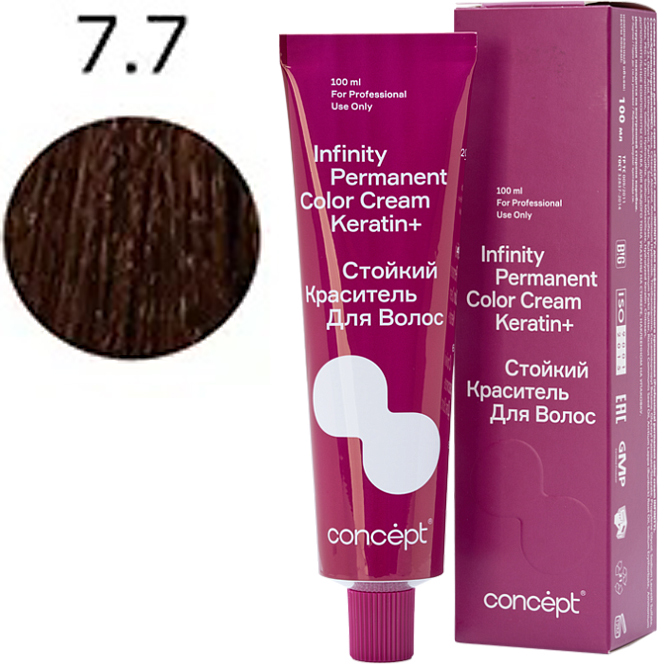 Краситель Infinity Кератин+ — это синергия многогранности и стойкости цвета, бриллиантового блеска, восстановления структуры волос, полноценного и естественного покрытия седины.