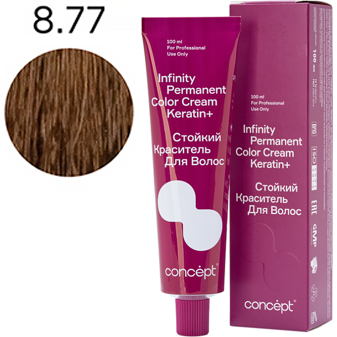 Краситель Infinity Кератин+ — это синергия многогранности и стойкости цвета, бриллиантового блеска, восстановления структуры волос, полноценного и естественного покрытия седины.