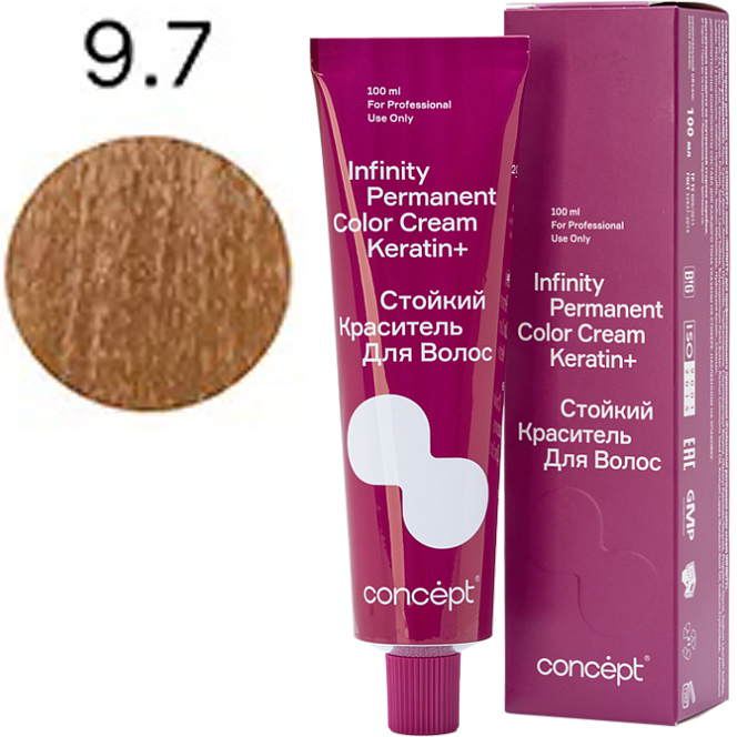 Краситель Infinity Кератин+ — это синергия многогранности и стойкости цвета, бриллиантового блеска, восстановления структуры волос, полноценного и естественного покрытия седины.