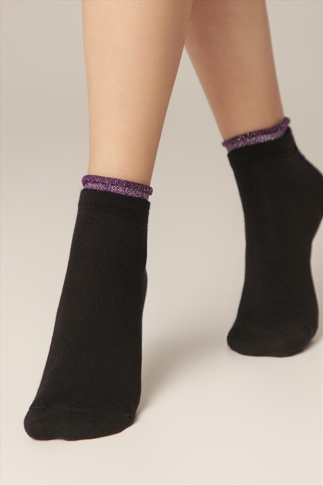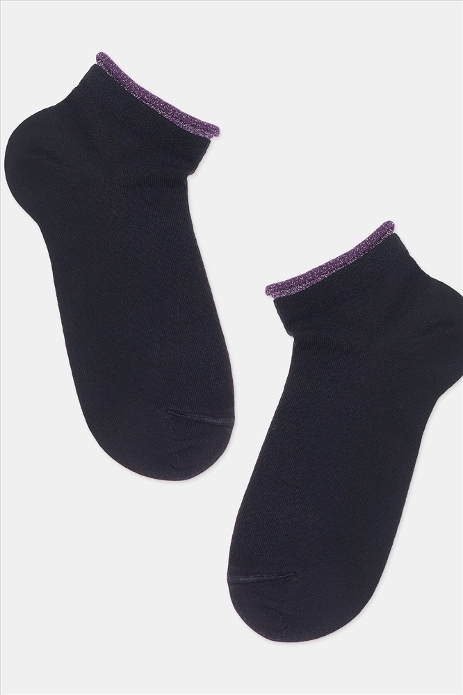 Укороченные спортивные женские носки из хлопка, однотонные с контрастной декоративной отделкой по краю резинки.