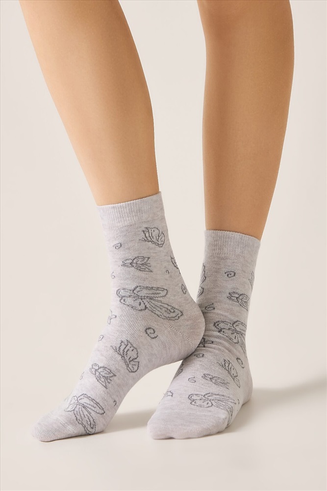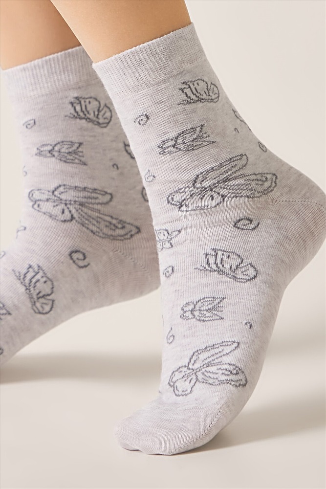 Производитель: CONTE ELEGANT ID товара: 1234137 Состав: Хлопок 65%, полиамид 33%, эластан 2% Сезон: Весна/Лето Рисунок: бабочки Вид носков/гольф: Фантазийные Страна бренда: Беларусь Страна производства: Беларусь