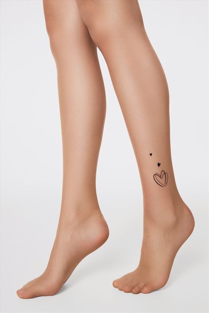 Колготки с имитацией тату «сердечки» из флока COMPLIMENT станут нежным и романтичным акцентом образа, подчеркнув вашу очаровательность. Благодаря двойному оплёту нити LYCRA, вам будет комфортно носить колготки на протяжении всего дня. LYCRA®: прочные, устойчивые к зацепкам и облегающие словно «вторая кожа» – именно такими свойствами обладают колготки, в состав которых включено волокно LYCRA. Двойной оплёт: специальная технология изготовления нити, в которой LYCRA дважды оплетается полиамидной нитью. Благодаря этому колготки становятся более эластичными и шелковистыми на ощупь. 20 den тонкие и эластичные на одной ноге – термоаппликация из флока в виде «сердечек» двойной оплёт нити LYCRA усиленная верхняя часть в виде шортиков усиленный торс с шортиками идеальное облегание плоский шов хлопковая ластовица укрепленный мысок выразительная деталь вашего образа.