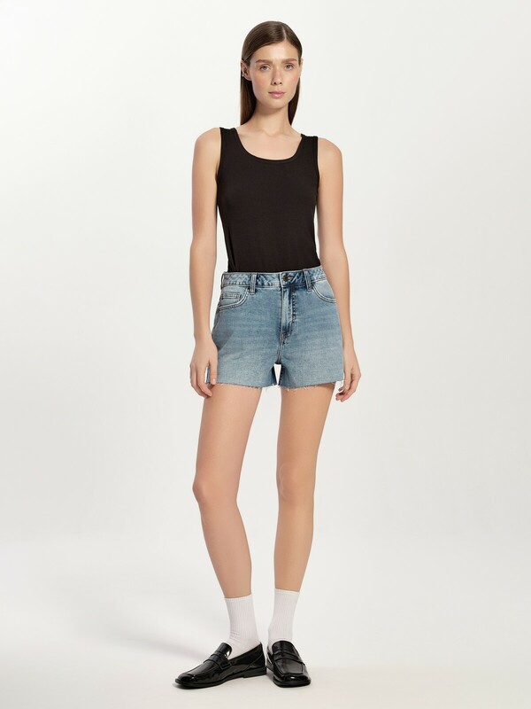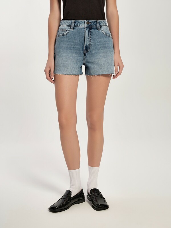 Джинсовые шорты с эффектом потёртостей и необработанным краем – это стильная модель, которая поможет создать интересный образ для активных прогулок, или яркий бунтарский наряд для вечеринки.