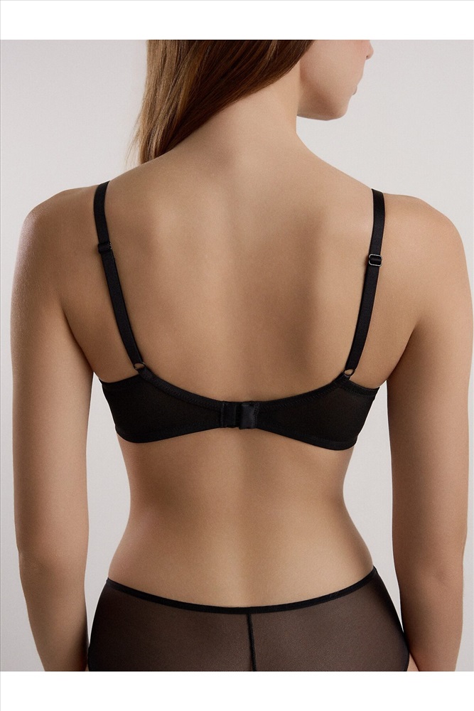 Бельё серии Desire из роскошного цветочного кружева, эластичной сетки с геометрическим рисунком и акцентными деталями подчеркнёт игривость, романтичность и притягательность образа. Благодаря формованной чашке с push-up эффектом бюстгальтер придаст дополнительный объем груди и подчеркнёт изящную линию декольте. • push-up • формованная чашка создает округлую форму • на каркасах • неэластичное цветочное кружево с эффектом клиппинга • эластичная сетка с геометрическим рисунком • декоративное украшение в виде изящного бархатного бантика • регулируемые бретели • сохранение формы и цвета при соблюдении рекомендаций по уходу.