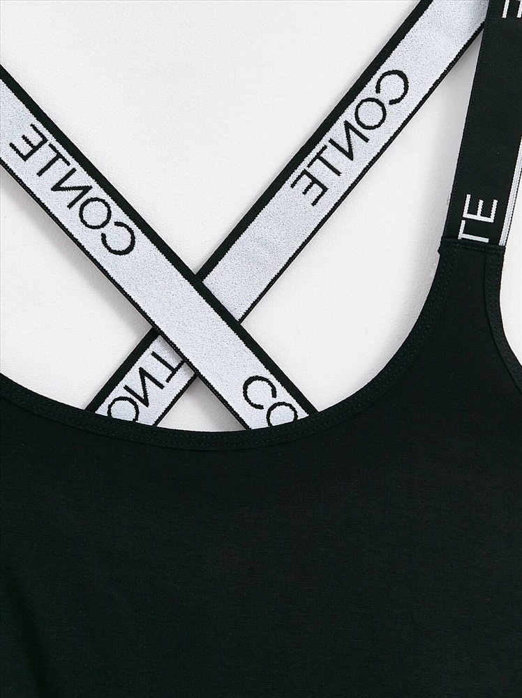 · перекрестные бретели из широкой эластичной тесьмы с логотипом бренда